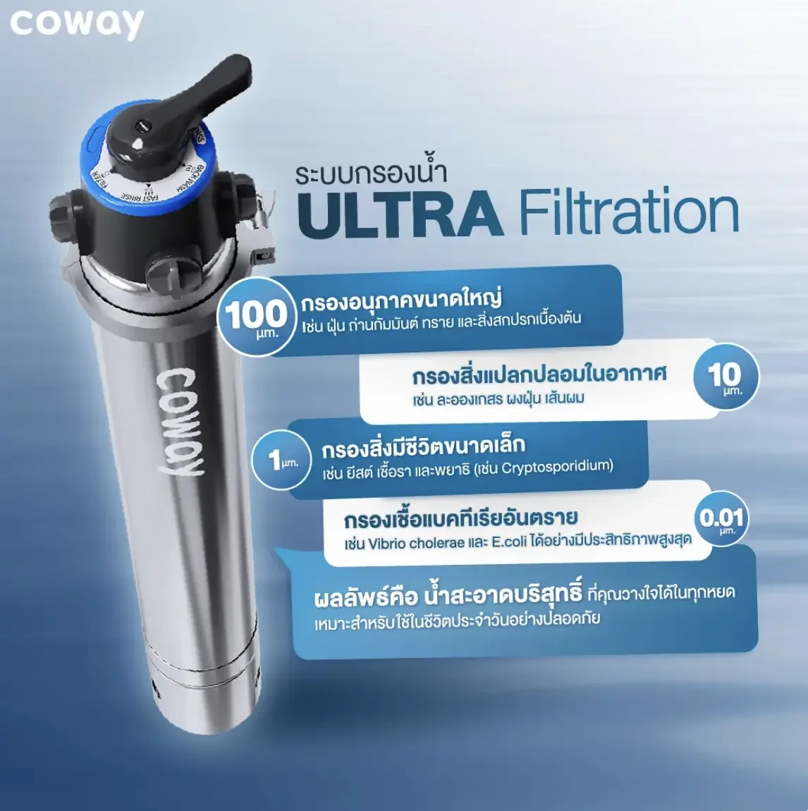 ด้วยระบบการกรองที่ได้มาตรฐานสากล ให้คุณได้น้ำดื่มที่สะอาด และได้รับอากาศบริสุทธิ์อย่างต่อเนื่อง ไม่ขาดตอน
